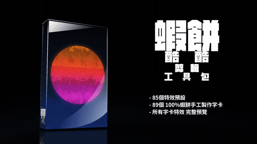 蝦餅 酷酷剪輯工具包 是有字卡、序列設定、特效、工作範本